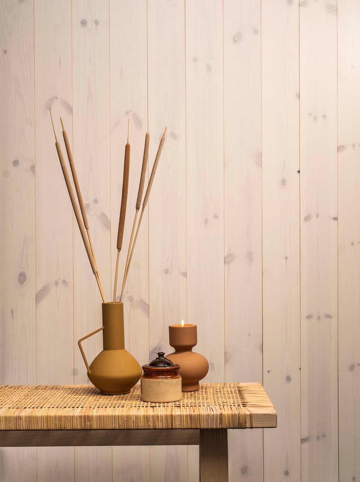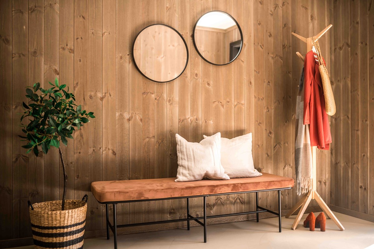Panelvegg som myk kontrast til andre flater, eller hele rommet i beiset panel? Du bestemmer. Fordi tre er et levende materiale, vil trevegger gi ulike uttrykk, avhengig av hva du kombinerer det med.