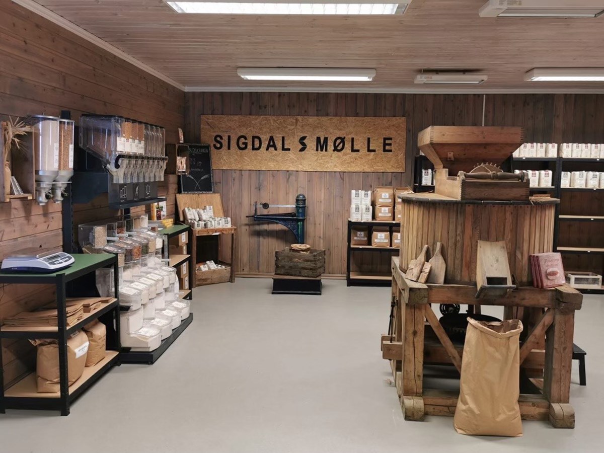 Navnet Sigdal Mølle kom naturlig, siden det er i Sigdal mølla hører hjemme. I den flotte møllebutikken er de klare til å slå av en prat, enten det handler om gode baketips eller hva som kreves for å lage mel av høy kvalitet.